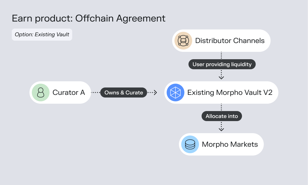 - Curator launches new vault (V1 or V2) exclusively for distributor's users